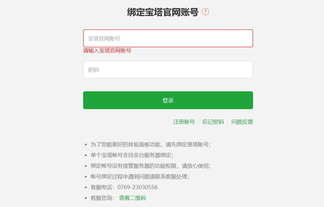 登录并且阅读完用户协议后,登录宝塔账号,没有的可以注册一个(阿里云服务器是可以直接登录阿里云账号的)