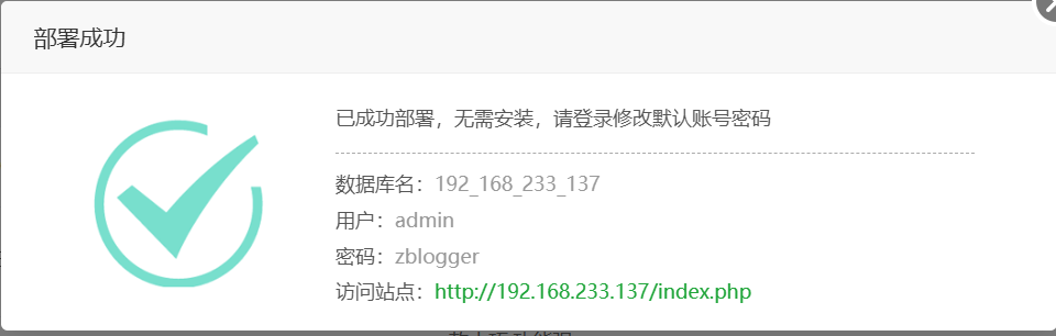 创建完成,系统会提供管理员账号密码。访问站点成功就代表站点搭建成功!创建站点后需要尽快修改管理员账号及密码!